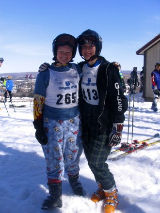 So now, it's time for something completely different. In 2010, we held our first super-combined. The first run was a super-G that started with the FIS start (the big hill), wandered to the south hill (Super Bowl), wandered back to plunge down the steep part of FIS, finishing at the bottom. The second run was a regular slalom on the south hill (by the woods). Winner was determined by total time.