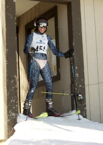 Who could ever forget Larry Cantor? Advised by his doctor to give up skiing due to health problems, he made a gutsy decision: he got another doctor. Over ten years later, after continuing to train hard and compete every year, contributing immeasurable good will and enthusiasm along the way (while battling a variety of medical ailments), he died between runs on the Friday slalom of Marks weekend in 1998.